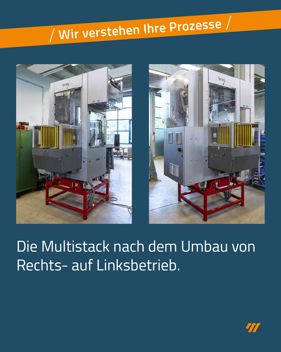 Individuallösungen: Seit einigen Wochen arbeitete unser Team intensiv am Umbau mehrerer MultiStack (MTS) Maschinen von Rechts- auf Linksbetrieb.